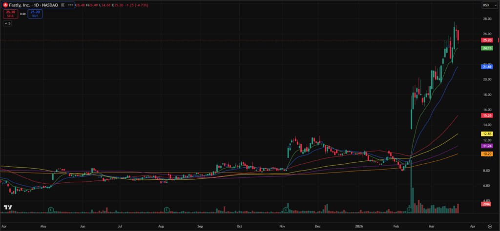 - FSLY – Continues to trend higher but is extended in the short term. A pullback would improve the structure.