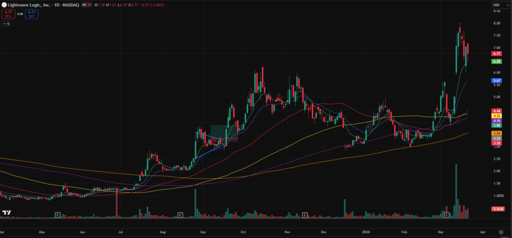 - LWLG – Posted a ~40% move on the highest volume in its history and is now consolidating around the 10-day moving average.