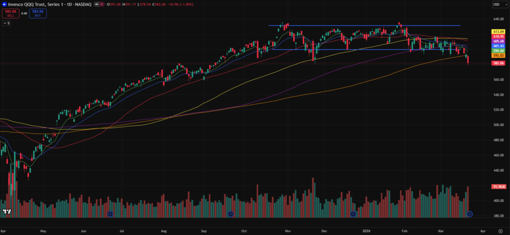 The remainder of the week trended lower, with Thursday marking the first decisive break of the 200-day since the tariff-driven sell-off last year, followed by further selling pressure on Friday accompanied by a noticeable increase in volume.