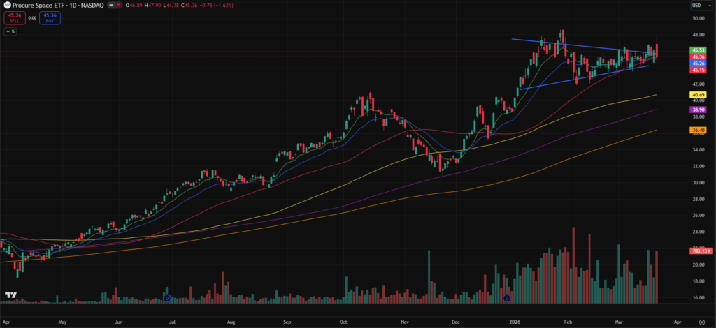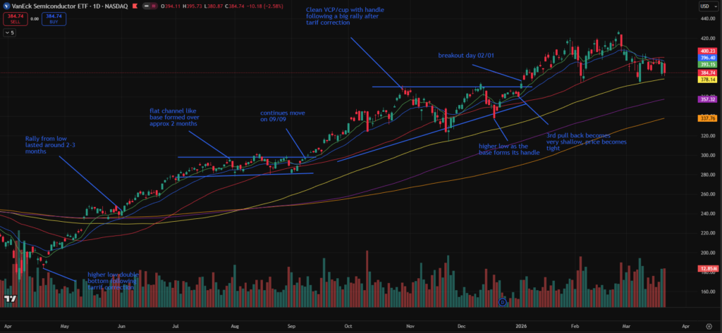 Remains within a constructive base and has held up relatively well compared to the indices. Notably, it appears to have formed a higher low compared to prior weeks. I will be watching to see if this level holds and whether the sector can stabilise. There are also several strong individual names within this theme.
