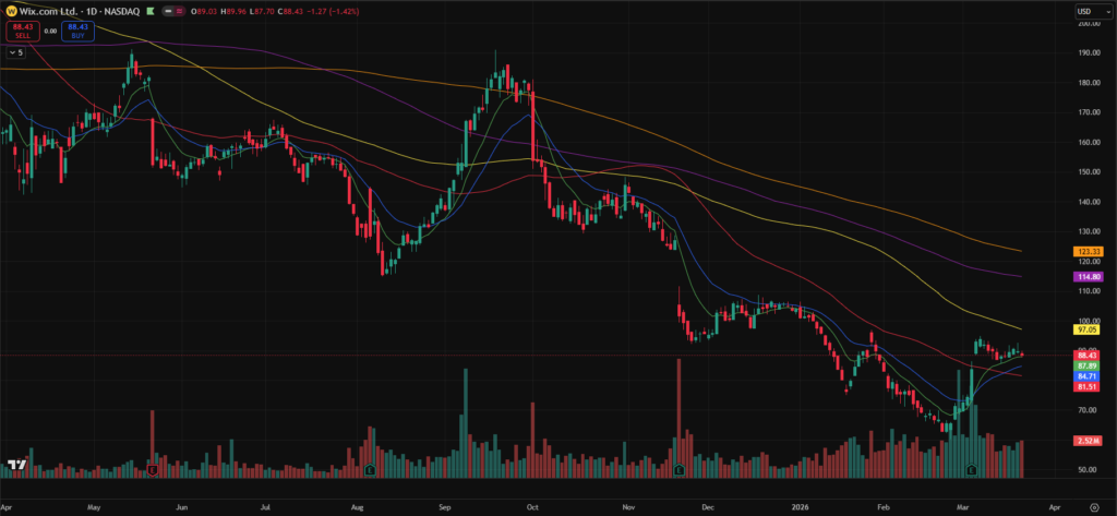 - WIX – Similar to YOU, with a strong earnings gap in early March followed by tight consolidation around the 10-day. Could see expansion if conditions improve, though overhead supply remains a factor due to its longer-term downtrend.