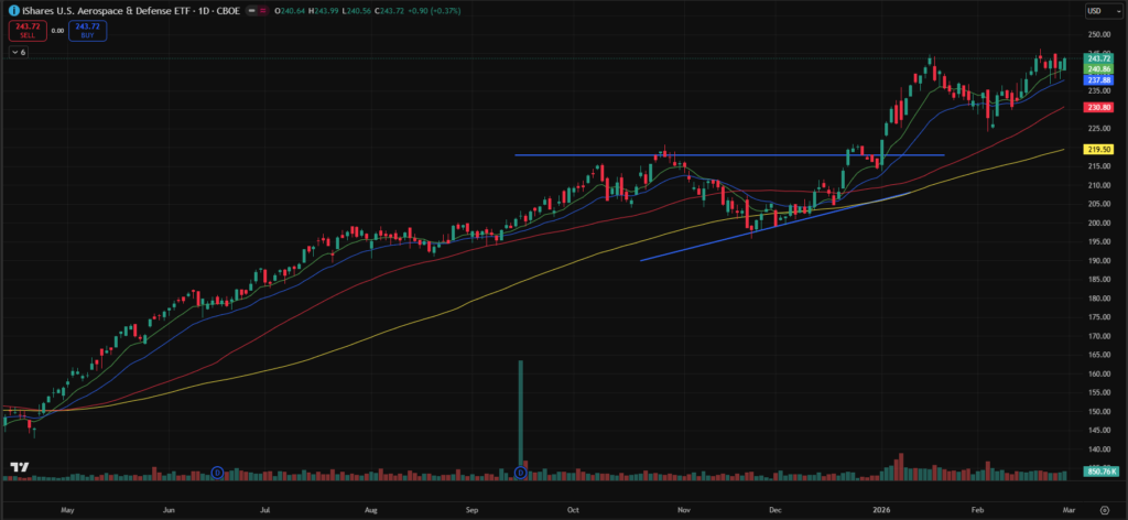- ITA – Spent the majority of the week consolidating around the 10-day moving average following the strong move the prior week. The theme has held up relatively well compared to the broader market. If overall conditions improve, this sector could offer constructive setups.