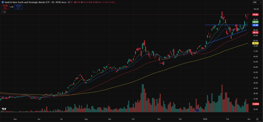 - REMX, to assess whether strength persists following its recent breakout and pullback.